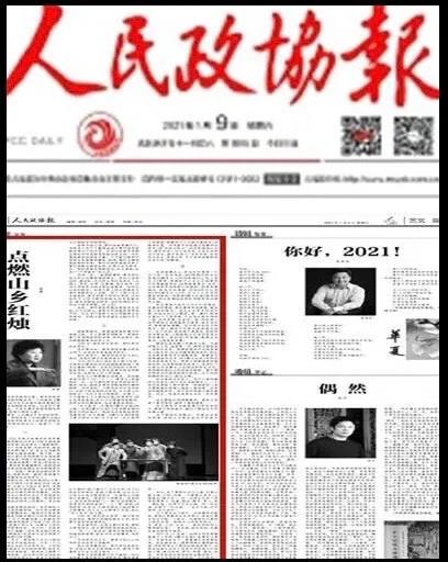 1月9日,《人民政协报》06版以《点燃山乡红烛》为题,刊发了我校特聘教授、国家一级编剧、大型校园黄梅戏音乐剧 《霜天红烛》编剧侯露的文章, 文章从创造思路、创作过程、剧情人物的介绍等三个方面阐述了我校大型校园黄梅戏音乐剧《霜天红烛》的创排历程。文章指出这次《霜天红烛》的创作与公演的许多环节对于师范学院的教学内容和方式是一个有意义的拓展,并表示实现中华民族伟大复兴应让优秀传统文化在校园得到持续的传播与传承。