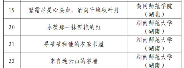本网讯 近日,教育部关工委发布《教育部关工委关于公布2024年“读懂中国”活动入选作品名单的通知》(教关委函〔2024〕18号),我校选送的作品在全国评比中取得优异成绩。马克思主义学院《繁霜尽是心头血,洒向千峰秋叶丹》荣获最佳征文并入选中国教育电视台展播;传媒与影视学院《大别崎山烛光红》《经过一番寒彻骨,换来梅花扑鼻香》荣获优秀微视频。学校荣获2024年教育部“读懂中国”活动表扬单位荣誉称号。学校连续4年蝉联教育部“读懂中国”活动最佳奖,取得了此项赛事的创新突破。