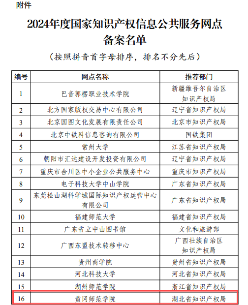 本网讯 12月17日,国家知识产权局公布了2024年度国家知识产权信息公共服务网点名单,我校成为2024年度湖北省唯一入选的国家级知识产权信息公共服务网点。